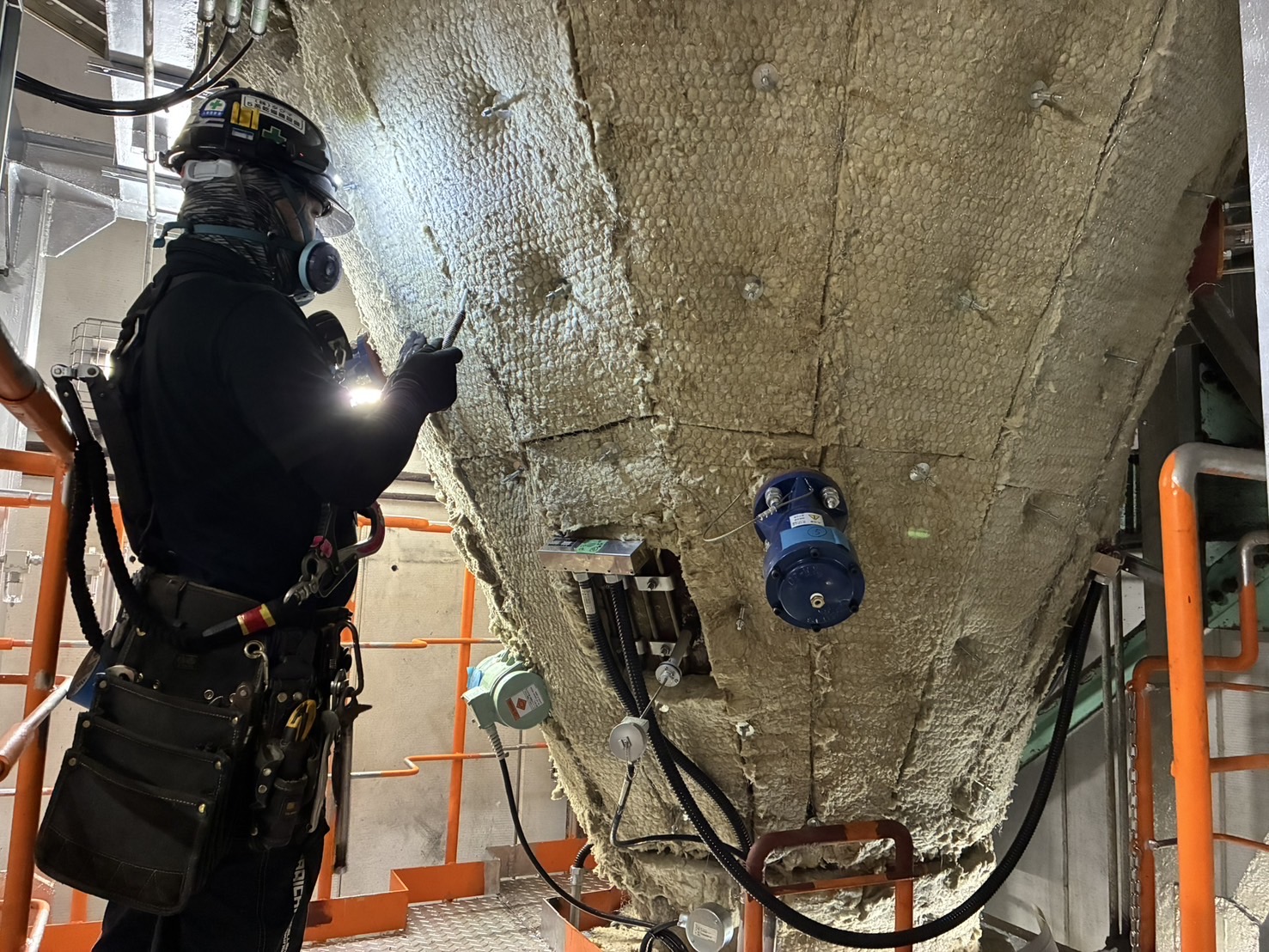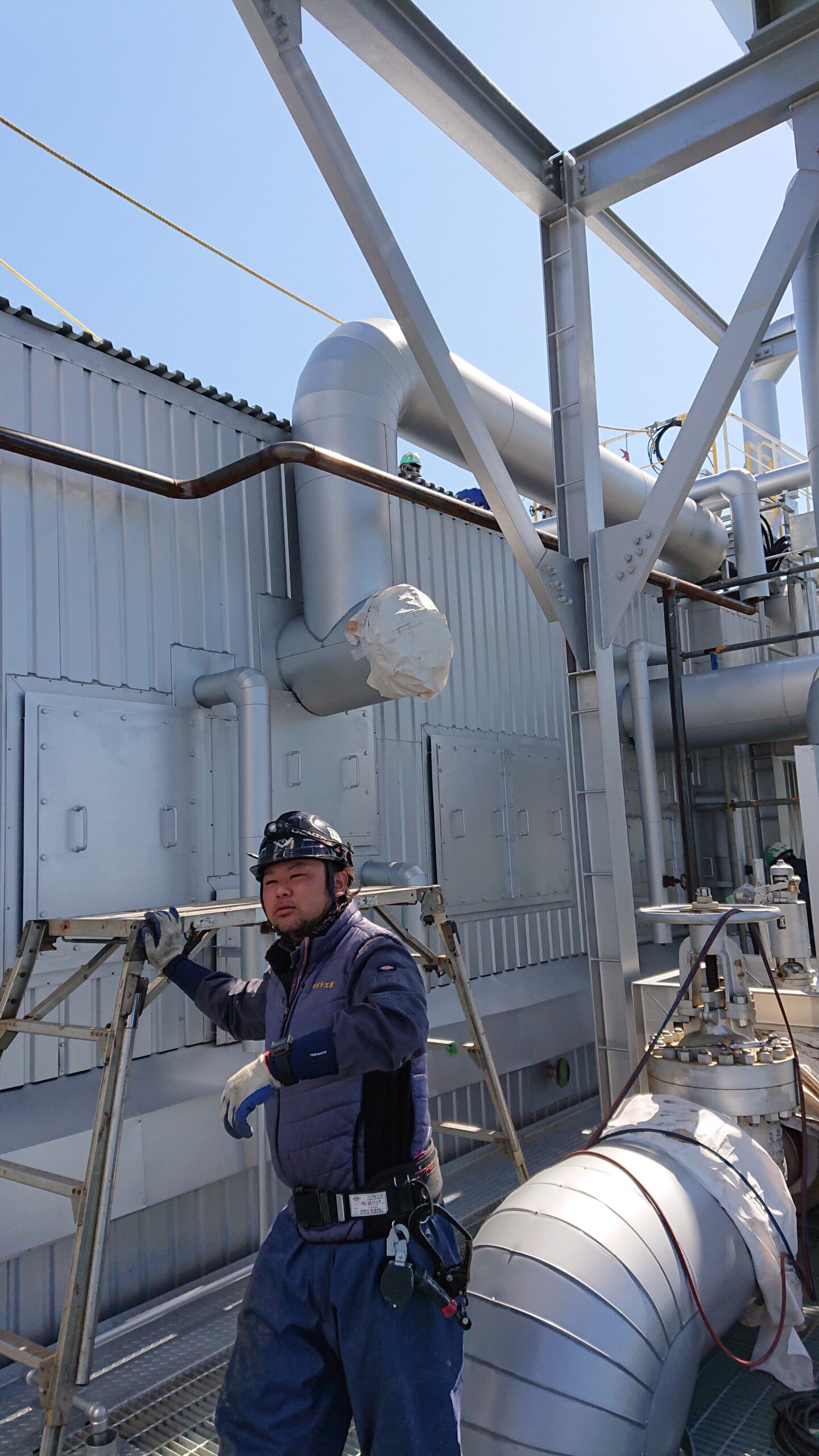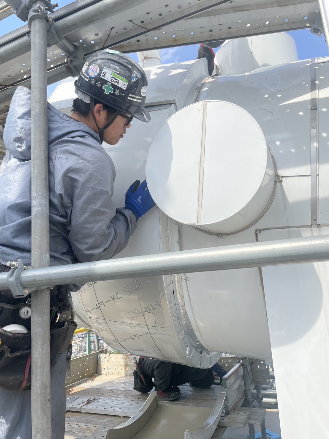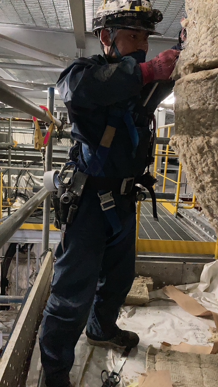断熱材の施工から板金の加工・取付け、保温止め金物の溶接、足場架設まで自社で一貫して行うことで、現場ごとの仕様や環境に柔軟に対応し、熱効率の向上やエネルギー損失の防止、設備の長寿命化に貢献する重要な工程を担っています。